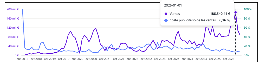 Desde nuestra entrada el 1 de Noviembre de 2024, la progresión ha sido exponencial. Logramos estabilizar el ACOS mientras duplicábamos la facturación mes a mes.